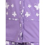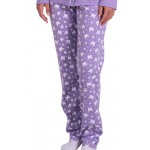 Παντελόνι ίντερλοκ εμπριμέ σε λιλά χρώμα με μαλακό λάστιχο στη μέση και ίσια γραμμή στο πόδι.