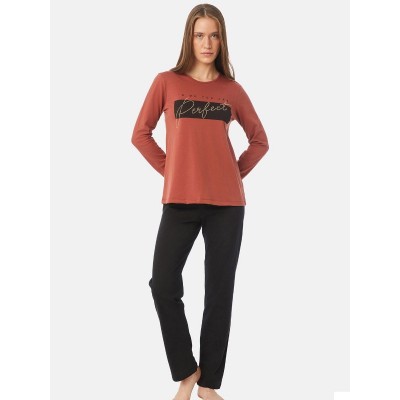 Πυτζάμα γυναικεία βαμβακερή Μινέρβα σε χρώμα terracota.