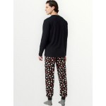 Παντελόνι μακρύ σε μαύρο χρώμα με ανεξίτηλο τυπώμα All Over και μπάσκες στα τελειώματα.