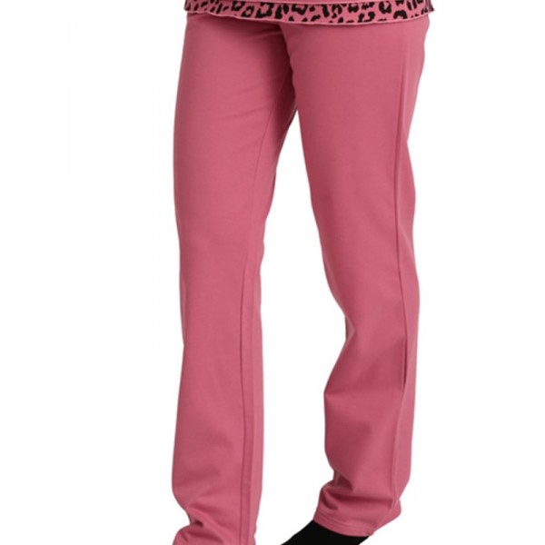 Παντελόνι ίντερλοκ σε χρώμα σάπιο μήλο με μαλακό λάστιχο στη μέση και ίσια γραμμή στο πόδι.
