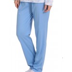 Παντελόνι λεπτό αχνούδιαστο σε χρώμα σιέλ με μαλακό λάστιχο στη μέση και ίσια γραμμή στο πόδι.