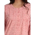 Νυχτικό μακρυμάνικο εμπριμέ σε ροζ απαλό χρώμα με στρόγγυλη λαιμόκοψη και πατιλέτα.