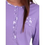 Μπλούζα ίντερλοκ σε λιλά χρώμα με πατιλέτα στη λαιμουδιά για μεγαλύτερη άνεση και μοντέρνα διακριτικά ανεξίτηλα τυπώματα.