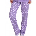 Παντελόνι ίντερλοκ εμπριμέ σε λιλά χρώμα με μαλακό λάστιχο στη μέση και ίσια γραμμή στο πόδι.