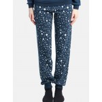 Παντελόνι σε χρώμα μαρίν με μπάσκα στο κάτω μέρος και μαλακό λάστιχο.