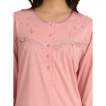 Νυχτικό μακρυμάνικο σε ροζ χρώμα με στρόγγυλη λαιμόκοψη και πατιλέτα.