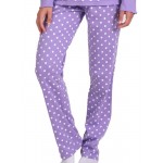 Παντελόνι ίντερλοκ πουά σε λιλά χρώμα με μαλακό λάστιχο στη μέση και ίσια γραμμή στο πόδι.