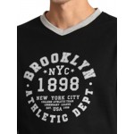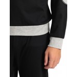 Μπλούζα σε μαύρο χρώμα με στρόγγυλη λαιμουδιά και μοντέρνο ανεξίτηλο τύπωμα.Η μπλούζα έχει διχρωμία στο λάστιχο στη μέση και στους αγκώνες.