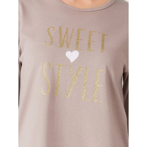 Μπλούζα σε χρώμα coffe Late με στρογγυλή λαιμουδιά και ανεξίτηλο τύπωμα.