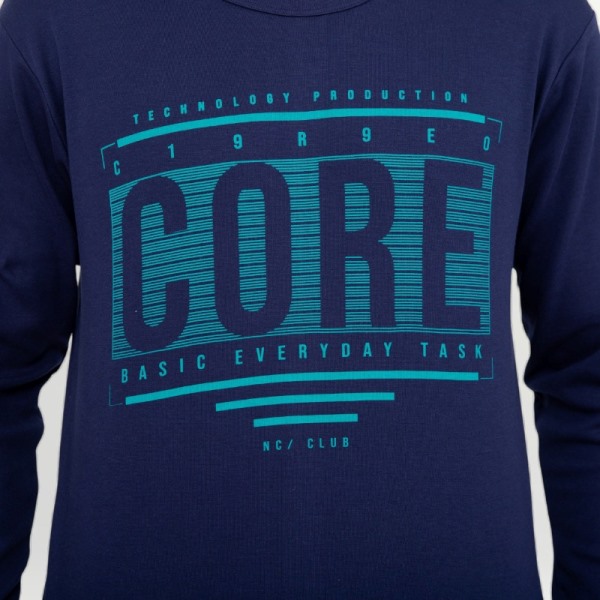Μπλούζα μαρίν με στρογγυλή λαιμουδιά και μοντέρνο ανεξίτηλο τύπωμα.