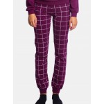 Παντελόνι εμπριμέ σε βυσσινί χρώμα με μπάσκα στο κάτω μέρος και μαλακό λάστιχο.