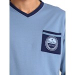 Μπλούζα σε ραφ χρώμα με V λαιμουδιά και διακριτικό τσεπάκι στο πλάϊ.