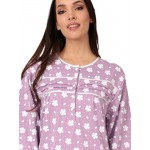 Νυχτικό φούτερ μακρυμάνικο εμπριμέ σε λιλά χρώμα με στρόγγυλη λαιμόκοψη και πατιλέτα.
