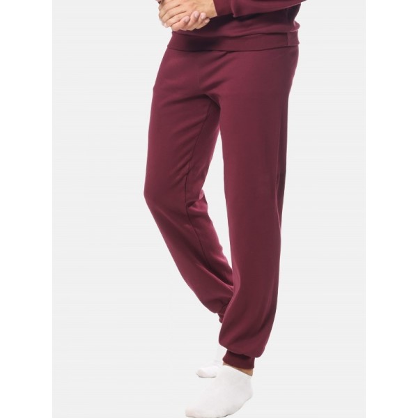 Παντελόνι μπορντώ μονόχρωμο με μπάσκα και μαλακό λάστιχο στη μέση.