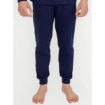 Παντελόνι μαρίν μονόχρωμο με μαλακό λάστιχο στη μέση και μπάσκα στο κάτω μέρος.
