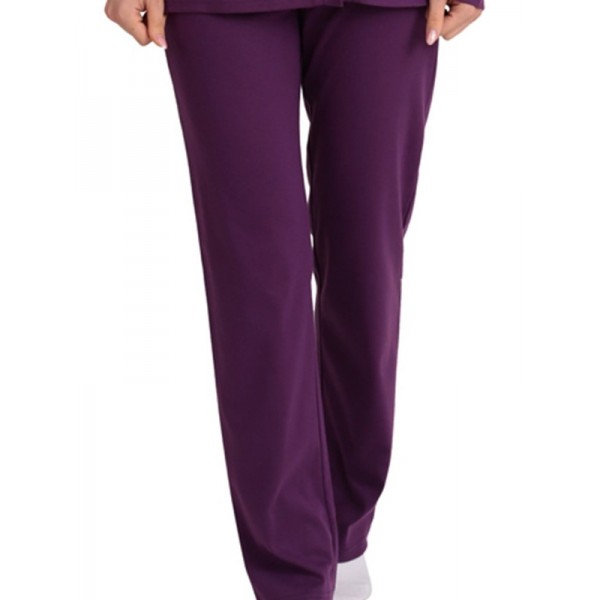 Παντελόνι ίντερλοκ σε μωβ χρώμα με μαλακό λάστιχο στη μέση και ίσια γραμμή στο πόδι.
