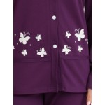 Ζακέτα ίντερλοκ σε μωβ χρώμα με μοντέρνα διακριτικά ανεξίτηλα τυπώματα.