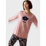 Μακρυμάνικη μπλούζα σε χρώμα ροζ απαλό με στρογγυλή λαιμουδιά και ανεξίτηλο τύπωμα.