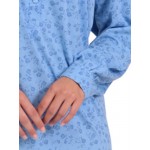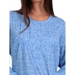 Νυχτικό μακρυμάνικο εμπριμέ σε σιέλ χρώμα με στρόγγυλη λαιμόκοψη και πατιλέτα.