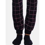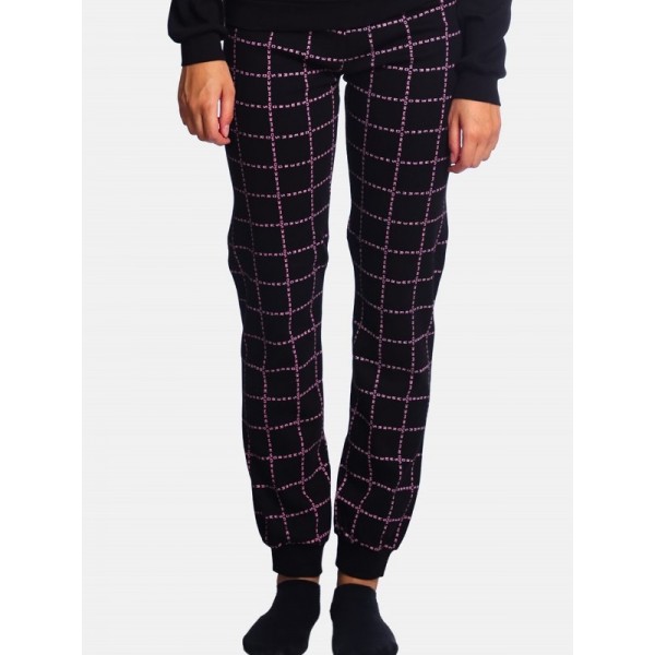 Παντελόνι εμπριμέ σε μαύρο χρώμα με μπάσκα στο κάτω μέρος και μαλακό λάστιχο.