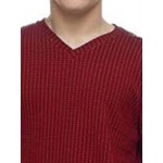 Μπλούζα σε χρώμα μπορντώ με VE λαιμουδιά και μοντέρνο πλεκτό ύφασμα.