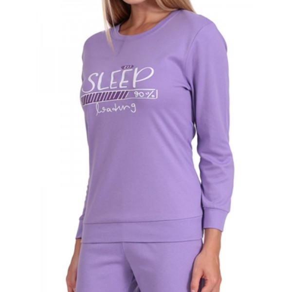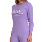 Μπλούζα ίντερλοκ σε λιλά χρώμα με ανεξίτηλο τύπωμα και στρόγγυλη λαιμουδιά.