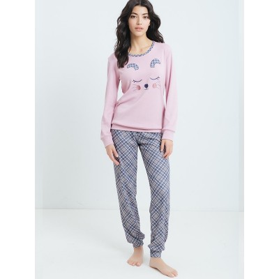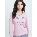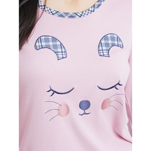 Μπλούζα σε ροζ χρώμα με στρογγυλή λαιμουδιά και σχέδιο γατούλα.