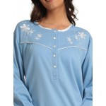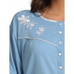 Νυχτικό φούτερ μακρυμάνικο σε σιέλ χρώμα με στρόγγυλη λαιμόκοψη και πατιλέτα.