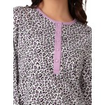 Νυχτικό μακρυμάνικο εμπριμέ animal με στρόγγυλη λαιμόκοψη και πατιλέτα σε σιέλ χρώμα.