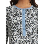Νυχτικό μακρυμάνικο εμπριμέ animal με στρόγγυλη λαιμόκοψη και πατιλέτα σε σιέλ χρώμα.