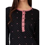 Νυχτικό μακρυμάνικο εμπριμέ με στρόγγυλη λαιμόκοψη και πατιλέτα.