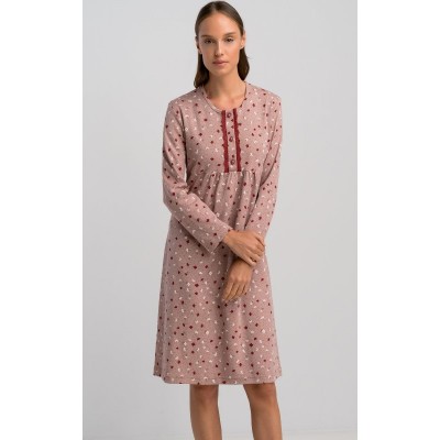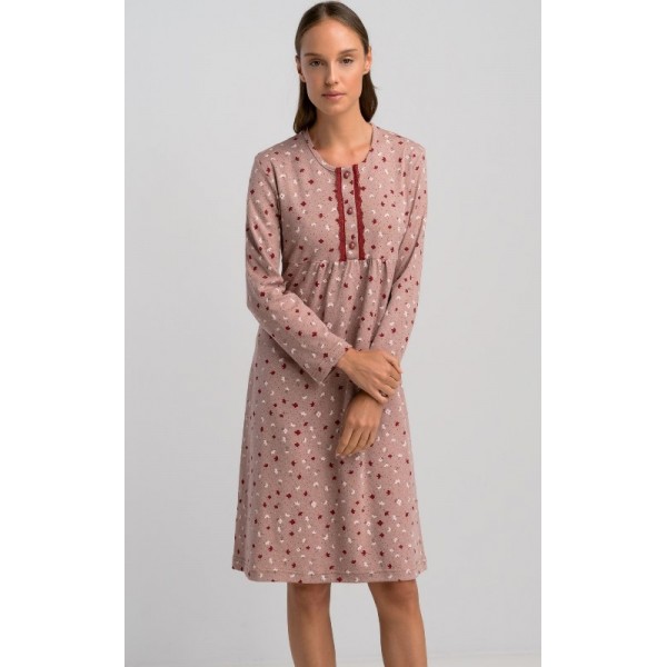 Νυχτικό με στρόγγυλη λαιμόκοψη, πατιλέτα και εμπριμέ allover σχέδιο.