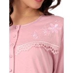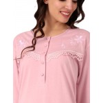 Νυχτικό μακρυμάνικο σε ροζ χρώμα με στρόγγυλη λαιμόκοψη και πατιλέτα.
