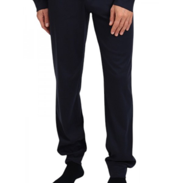 Παντελόνι σε χρώμα μπλε σκούρο , μακρύ μονόχρωμο με μπάσκα κάτω στο πόδι.
