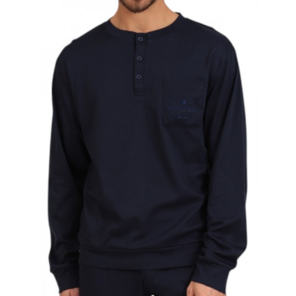 Μπλούζα σε χρώμα μπλε σκούρο με πατιλέτα στη λαιμουδιά και πρακτική τσέπη στο στήθος.