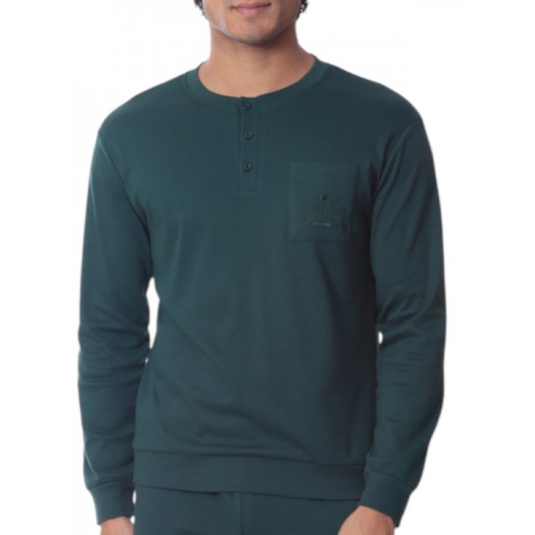 Μπλούζα σε χρώμα κυπαρισσί με πατιλέτα στη λαιμουδιά και πρακτική τσέπη στο στήθος.
