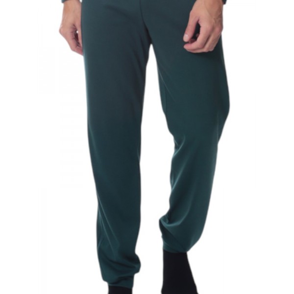Παντελόνι σε χρώμα κυπαρισσί , μακρύ μονόχρωμο με μπάσκα κάτω στο πόδι.