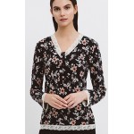 Μπλούζα μαύρη εμπριμέ με πατιλέτα και δαντέλα στη λαιμουδιά.