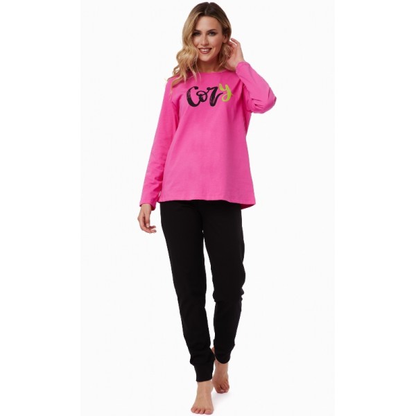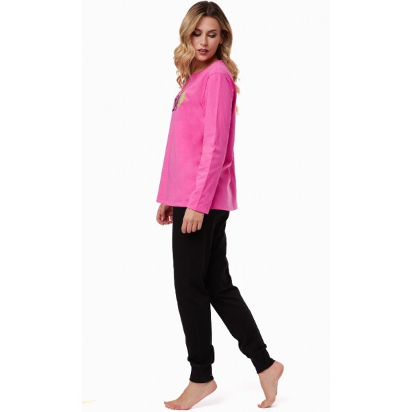 Πυτζάμα γυναικεία βαμβακερή Μινέρβα σε χρώμα φουξ/μαύρο.
