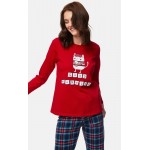 Πυτζάμα γυναικεία βαμβακερή Μινέρβα σε χρώμα κόκκινο/καρό.