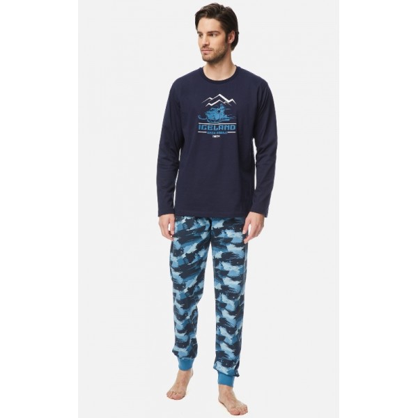 Πυτζάμα ανδρική βαμβακερή Μινέρβα σε χρώμα μαρίν/army.