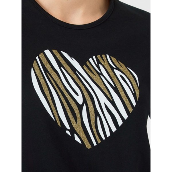 Μπλούζα σε χρώμα μαύρο με στρογγυλή λαιμουδιά και ανεξίτηλο τύπωμα επιχρυσωμένο.