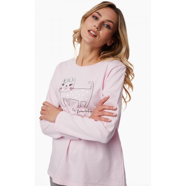 Γυναικεία χειμερινή πυτζάμα από 100% jersey βαμβάκι εξαιρετικής ποιότητας, αντοχής και απαλότητας με φυσική ελαστικότητα.