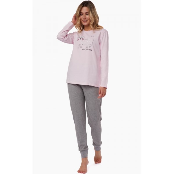 Πυτζάμα γυναικεία βαμβακερή Μινέρβα σε χρώμα ροζ/γκρι μελανζέ.