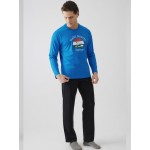 Μακρυμάνικη μπλούζα σε χρώμα ηλεκτρίκ με στρογγυλή λαιμουδιά και ανεξίτηλο τύπωμα στο στήθος.