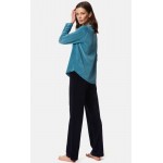 Πυτζάμα γυναικεία βελούδινη Μινέρβα σε χρώμα πετρόλ ανοιχτό/μαύρο.