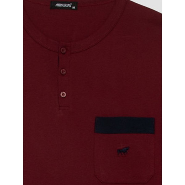 Μακρυμάνικη μπλούζα σε χρώμα μπορντώ με πατιλέτα στη λαιμουδιά και πρακτική τσέπη στο στήθος.