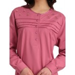 Νυχτικό μακρύ μακρυμάνικο με στρογγυλή λαιμόκοψη και πατιλέτα.