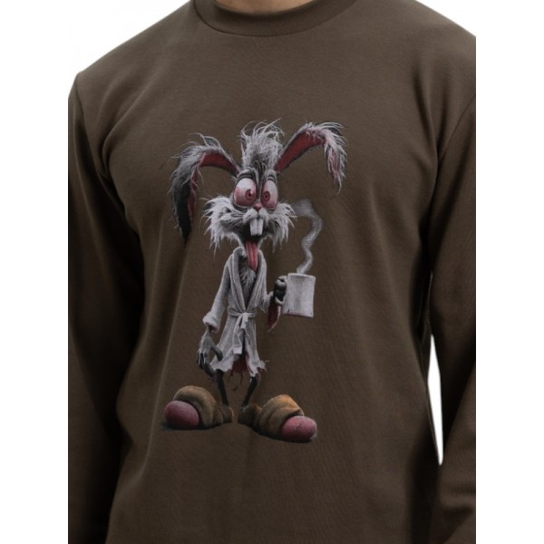 Μπλούζα σε μαύρο χακί με στρογγυλή λαιμουδιά και μοντέρνο ανεξίτηλο τύπωμα.