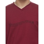 Μπλούζα σε χρώμα μπορντώ με VE λαιμουδιά και μοντέρνο ανεξίτηλο τύπωμα.